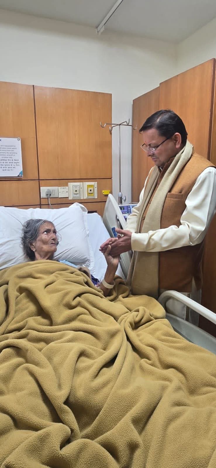 मुख्यमंत्री धामी ने मैक्स अस्पताल पहुंचकर पूर्व मंत्री स्व. प्रकाश पंत की माता का स्वास्थ्य जाना